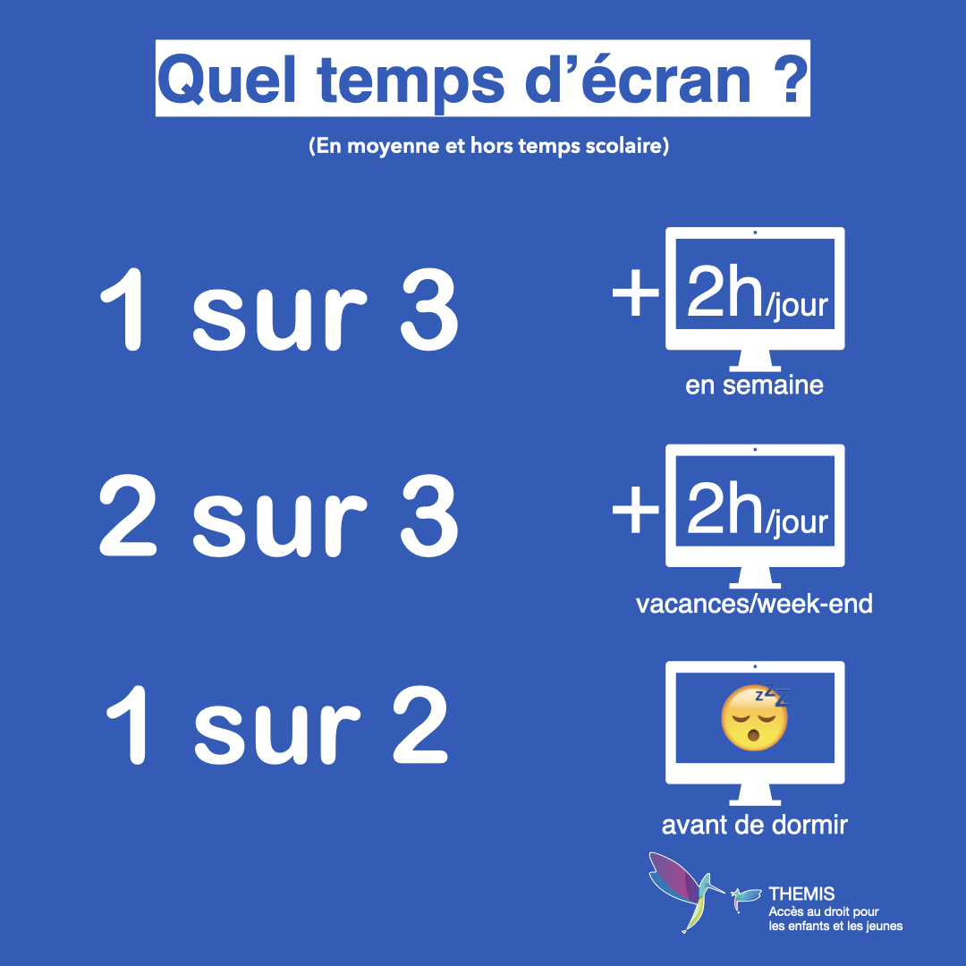 Ce temps augmente sensiblement les week-ends et durant les vacances scolaires puisque 60 à 70% des enfants y passeraient plus de 2h par jour.